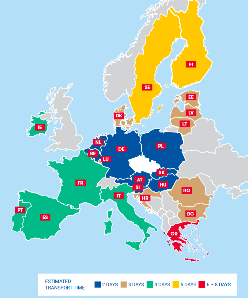 Doba dodání do jiných evropských zemí viz níže.